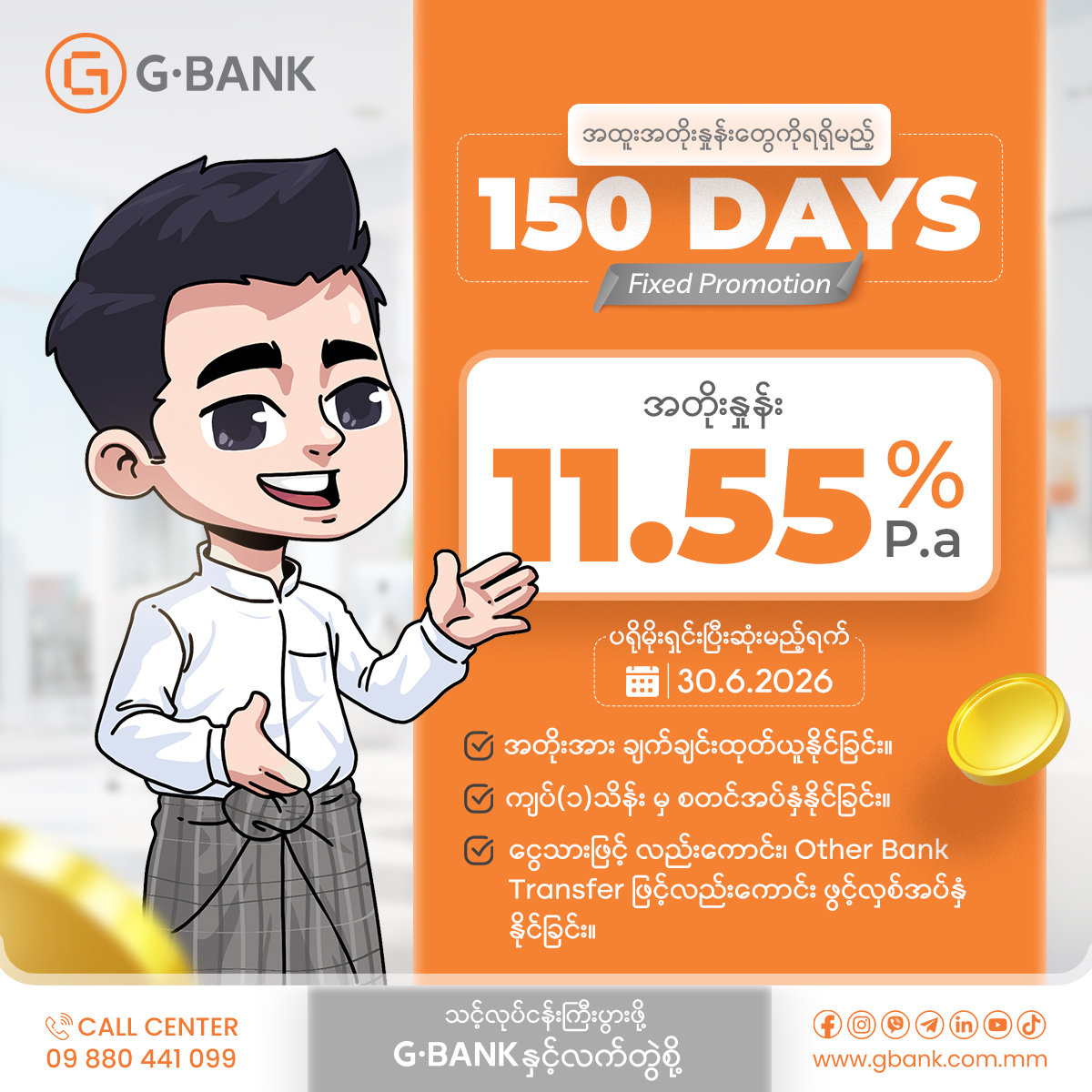 G Bank's first branch, the Monywa branch, has been opened for 4 years, and we..
