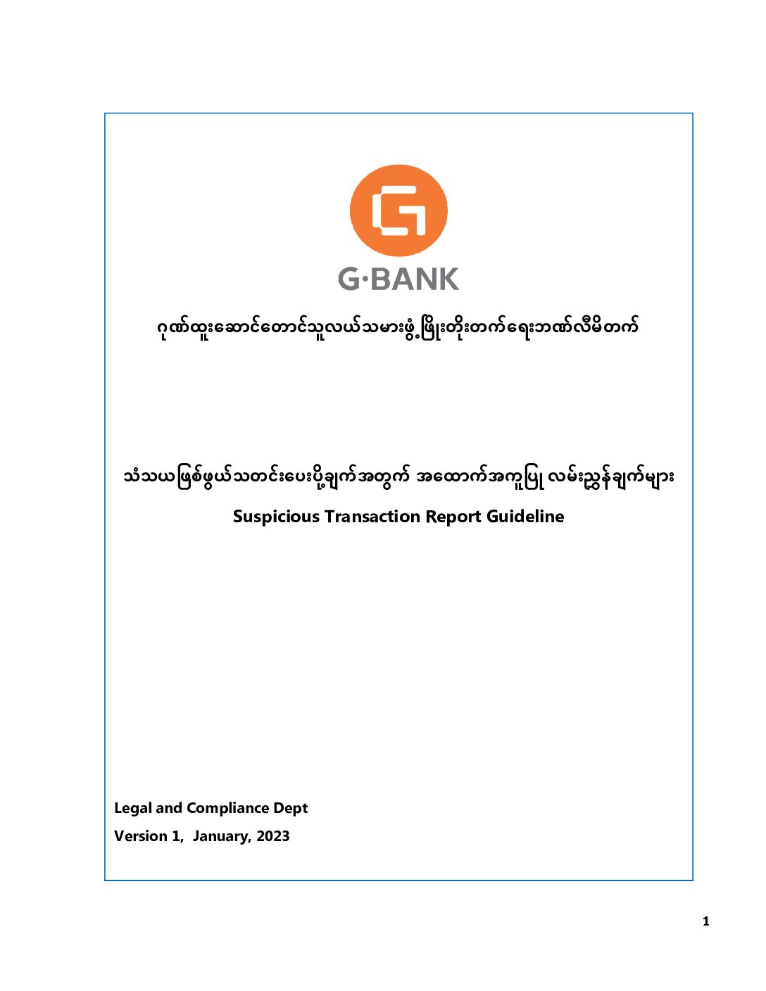 G Bank AML/CFT မူဝါဒ နှင့် လုပ်ထုံး လုပ်နည်းများ