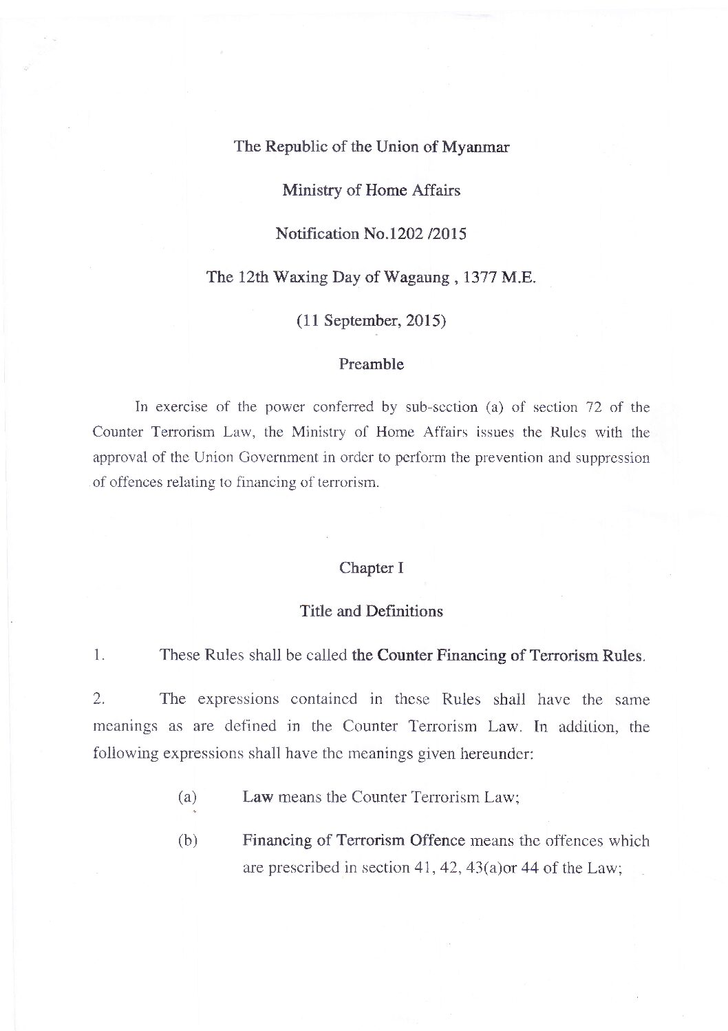 The Counter Financing of Terrorism Rules (2015)