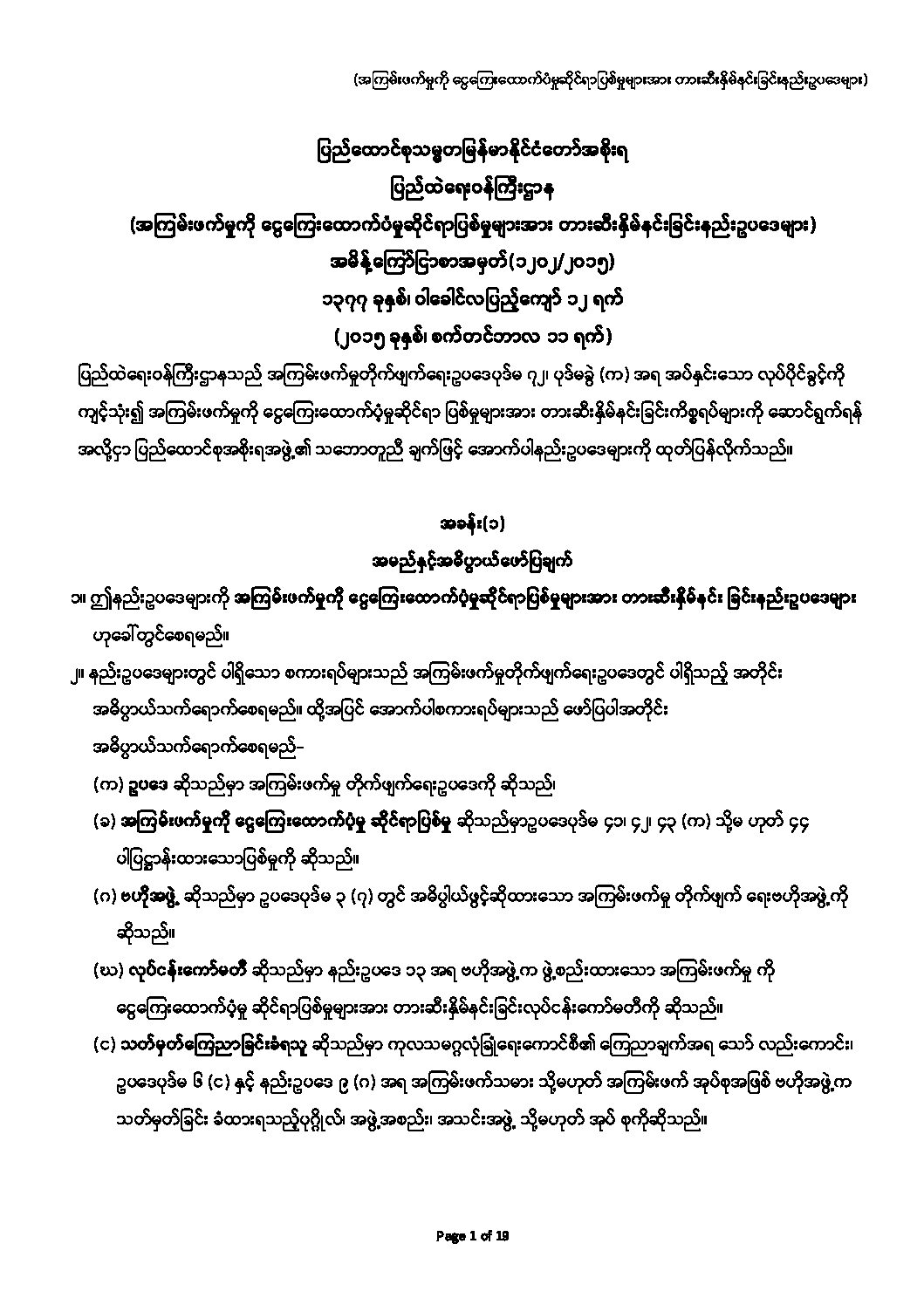 သတင်းပို့တာဝန်ဆိုင်ရာလမ်းညွှန်ချက် (၁/၂၀၁၉)